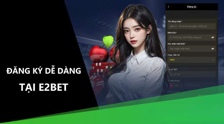 Việc đăng ký e2bet không hề khó khăn như nhiều người nghĩ.Chỉ với vài bước thực hiện nhanh gọn, bạn đã có thể trở thành thành viên và bắt đầu tận hưởng những dịch vụ đỉnh cao mà nền tảng này mang lại